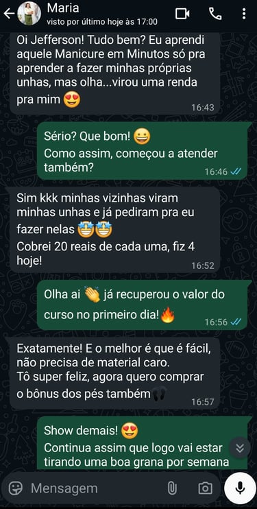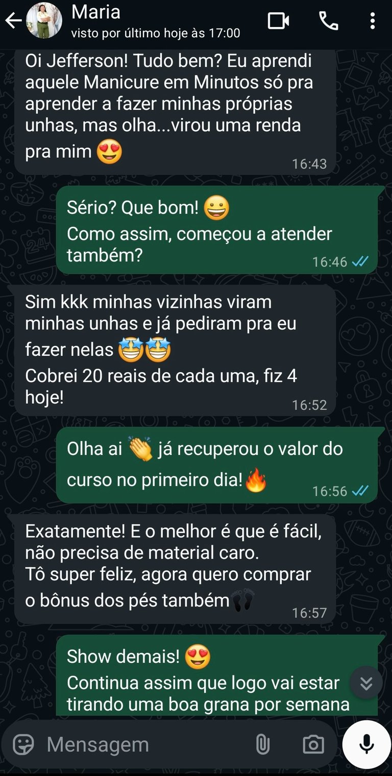 No curso Manicure em Minutos, você aprende em 11 módulos práticos + 2 bônus exclusivos como transformar sua paixão por unhas em profissão, conquistar clientes e ter mais liberdade para sua família.